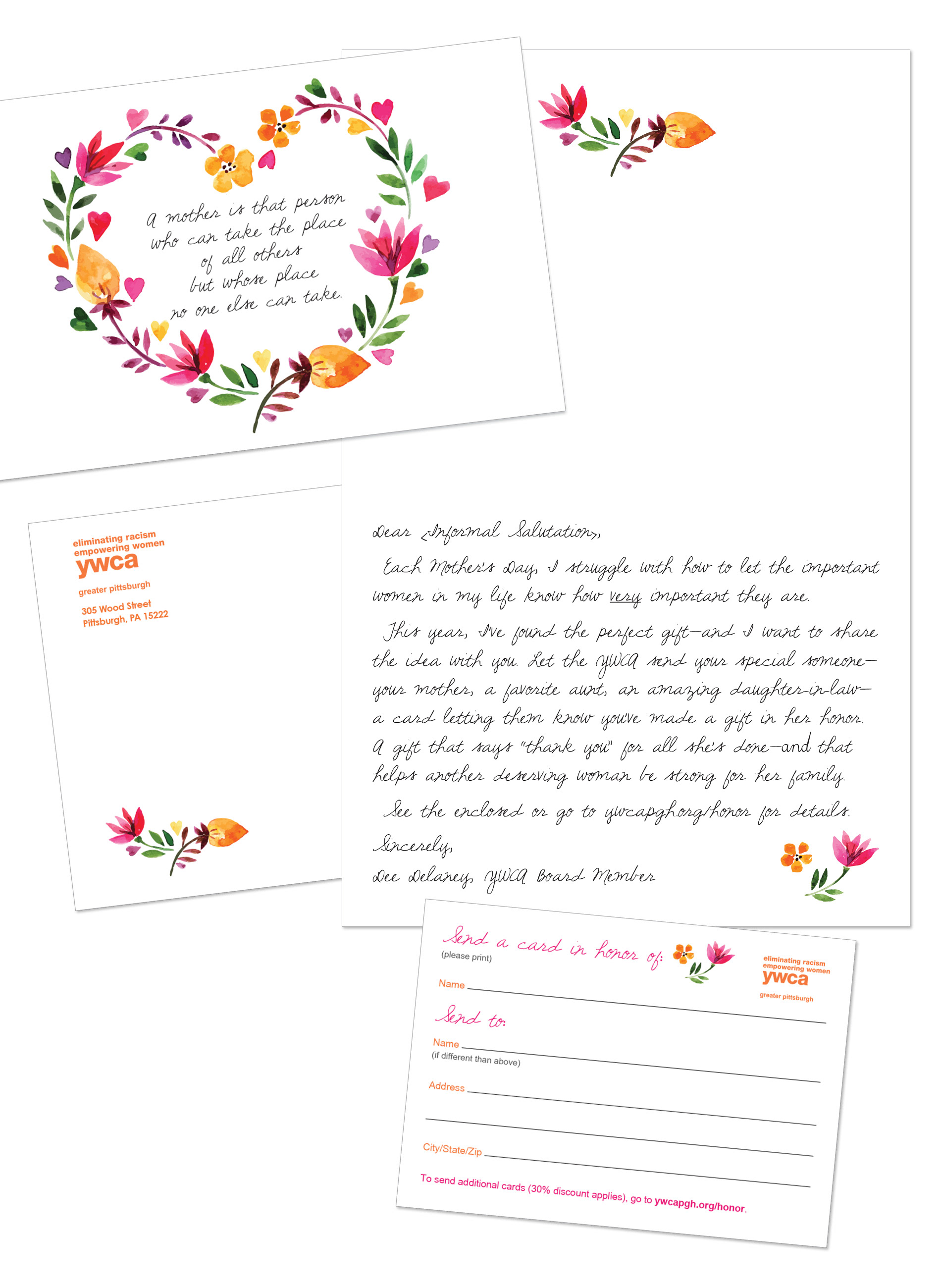 Mother's Day appeal for the YWCA Greater Pittsburgh. This was the most successful Mother's Day appeal in YWCA Greater Pittsburgh's history of Mother's Day appeal mailings.