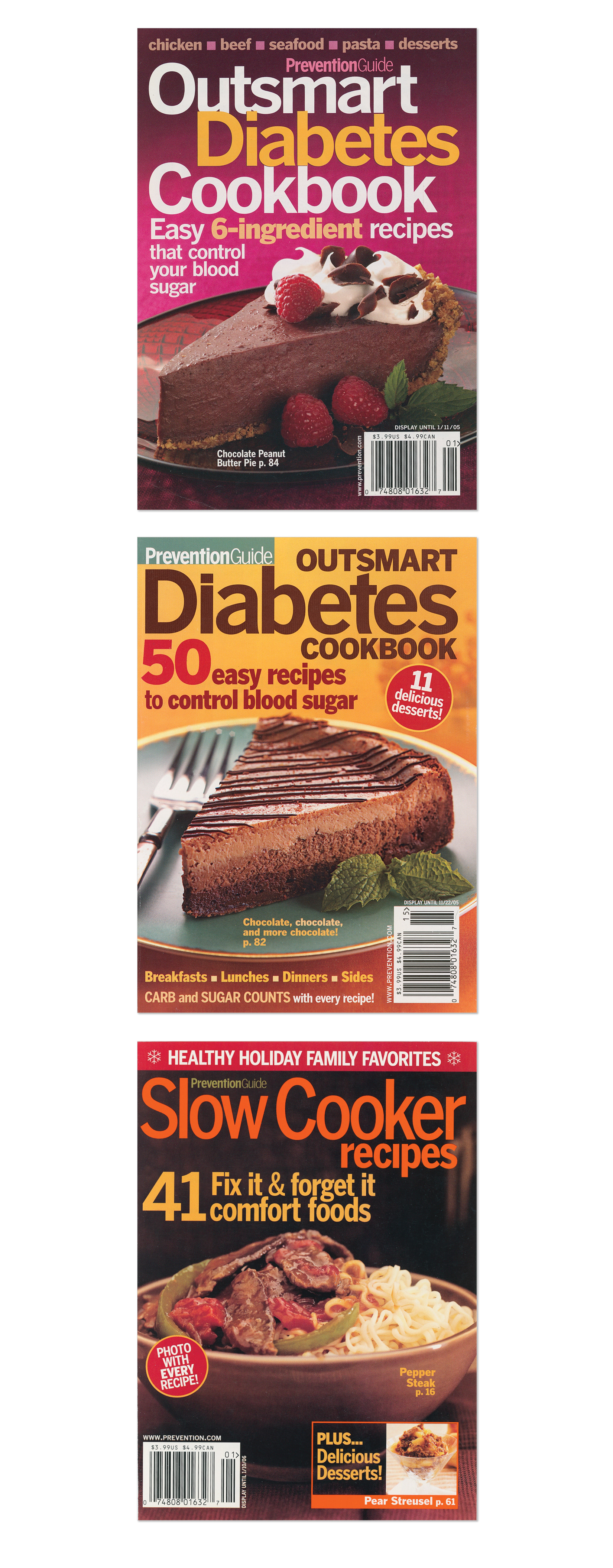 Prevention Guide Monthly Special Interest Publications cover designs. I handled the art direction of the photo shoot, working with the prop stylist, food stylist, and photographer for these cover images.